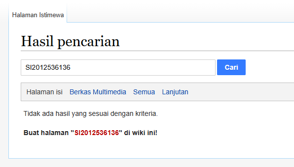 Cara selanjutnya klik tulisan merah dari hasil pencarian Anda untuk membuat halaman baru/ postingan baru dari kode SI[NIM Anda] untuk laporan Skripsi dan TA[NIM Anda] untuk laporan Tugas Akhir.