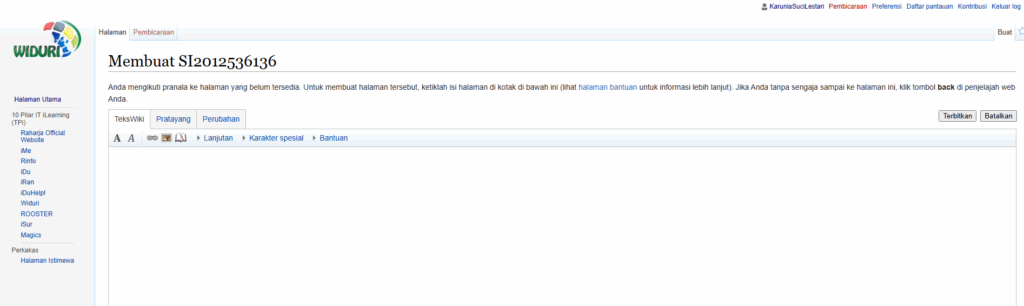 Saat membuat halaman baru dari SI[NIM Anda], Anda akan di arahkan ke halaman baru seperti dibawah ini :