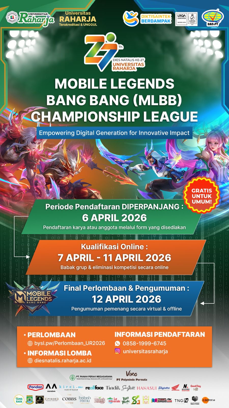 TANGERANG – Siapkan tablet grafis dan imajinasi terliar Anda! Dalam rangka memperingati Dies Natalis ke-27, Universitas Raharja resmi melempar tantangan terbuka bagi para desainer dan seniman visual melalui ajang bergengsi “Creative Poster Competition”. Kompetisi ini bukan sekadar ajang pamer estetika, melainkan medan tempur kreativitas …