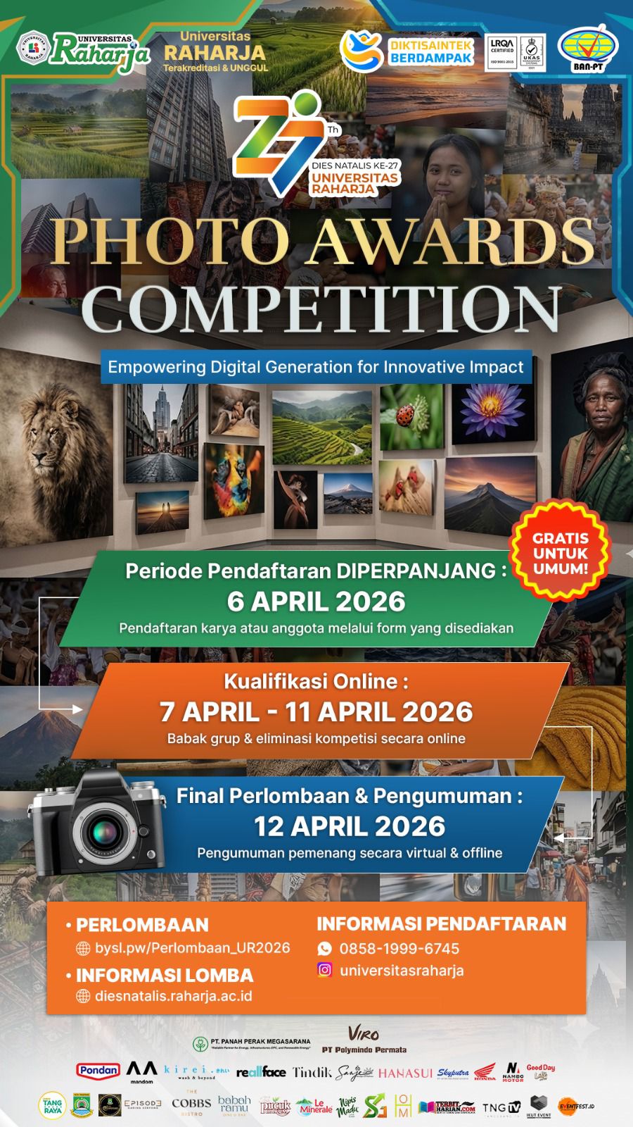 Tangerang, TERBITHARIAN.COM – Universitas Raharja kembali menunjukkan komitmennya dalam mendukung kreativitas generasi muda di bidang seni visual dengan menyelenggarakan “Photo Awards Competition”. Ajang ini merupakan bagian dari rangkaian perayaan Dies Natalis ke-27 yang bertujuan menjadi wadah ekspresi bagi para fotografer di era digital yang …