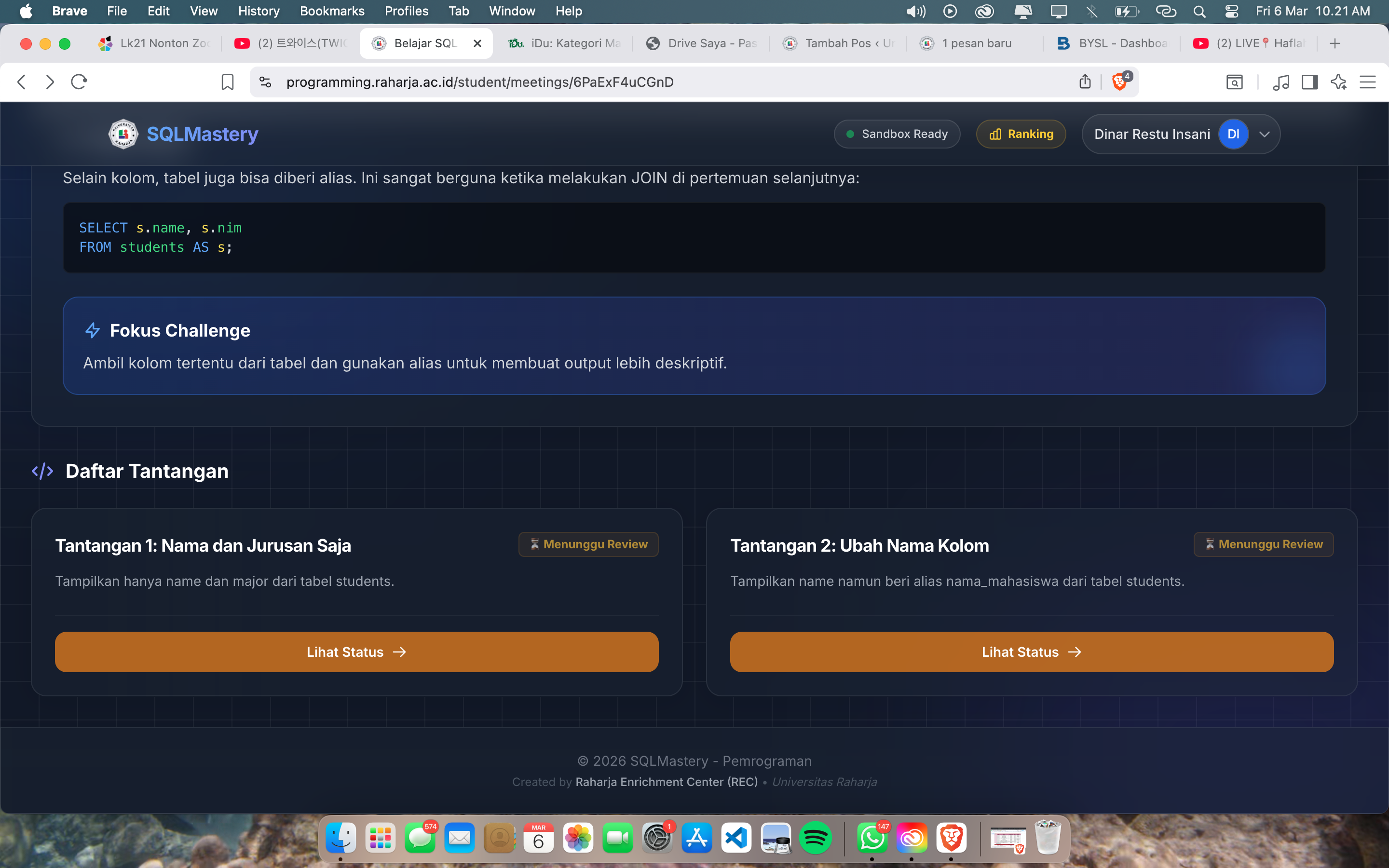 Nama : Haikal Ananta Dwiguna NIM : 2431416812 Telah menyelesaikan challange mingguan dari kelas Pemrograman 2 sesuai yang diinstruksikan dosen pengampu kami, Kak Adam. Pelajaran SQL ini ternyata sangat berfungsi untuk dipelajari, karena pengimplementasiannya sangat massif dipakai di segala industri …