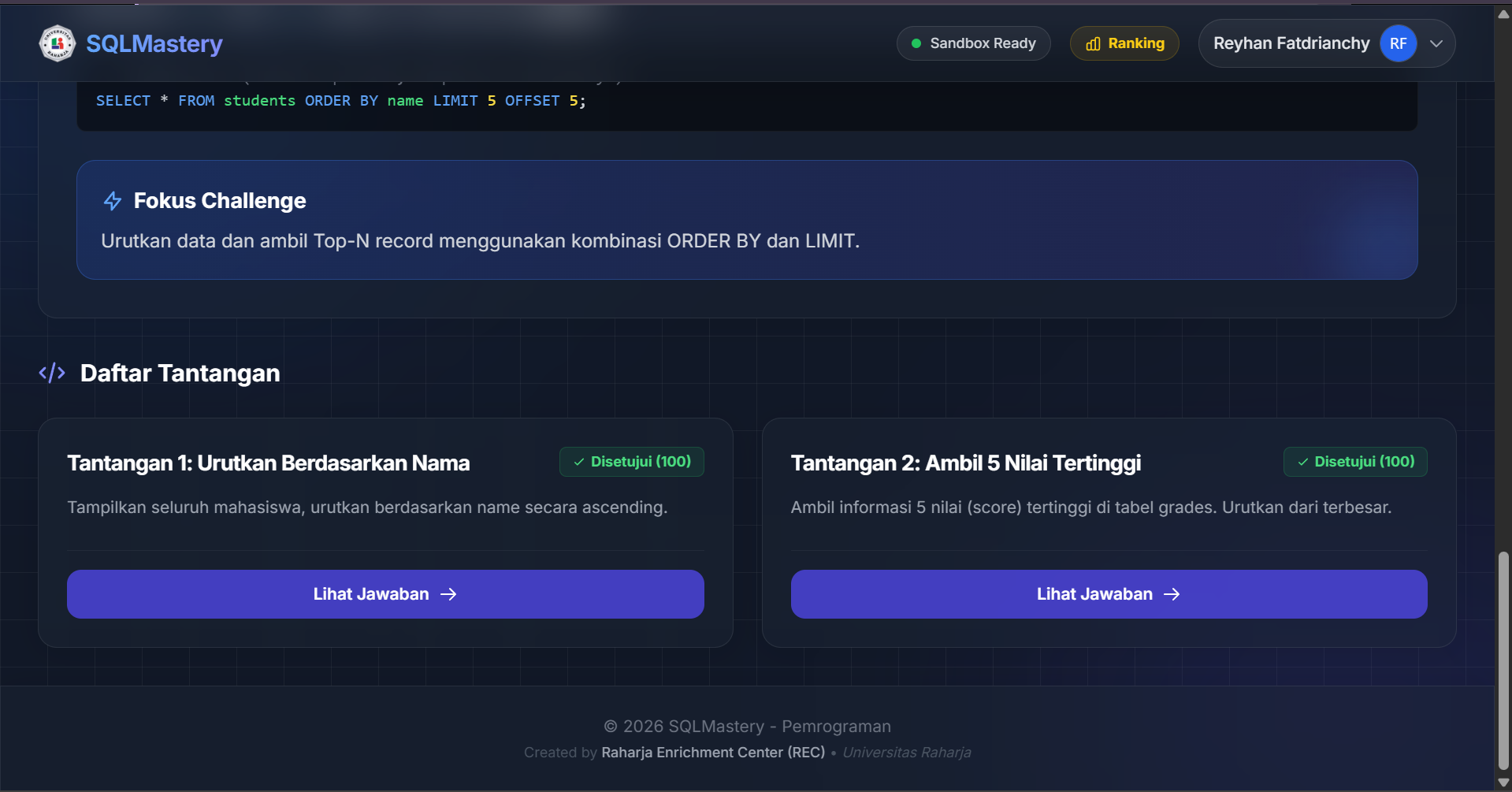 Materi ini membahas teknik optimasi pengambilan data pada SQL melalui fitur Multi-Column Sorting, LIMIT, dan OFFSET. Pengurutan multi-kolom memungkinkan penyajian data yang lebih terorganisir dengan menetapkan prioritas urutan pada beberapa atribut sekaligus, seperti mengurutkan jurusan secara alfabetis kemudian menyaring IPK tertinggi di dalamnya. Selain itu, penggunaan perintah LIMIT sangat krusial untuk membatasi jumlah baris yang ditampilkan guna meningkatkan efisiensi performa, yang jika dikombinasikan dengan OFFSET, menjadi pondasi utama dalam pembuatan sistem paginasi pada aplikasi. Pemahaman terhadap ketiga elemen ini sangat membantu developer dalam mengelola volume data besar agar tetap ringan saat diakses oleh pengguna.