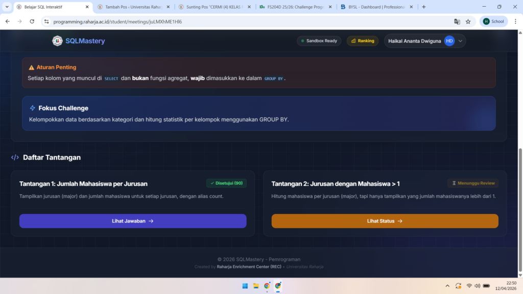 Telah mengerjakan Challenge Week dari kelas pemrograman 2 sesuai yang diintruksikan oleh dosen pengampu kami, Kak Adam