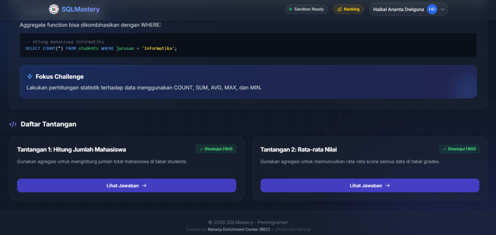 Telah mengerjakan Challenge Week dari kelas pemrograman 2 sesuai yang diintruksikan oleh dosen pengampu kami, Kak Adam
