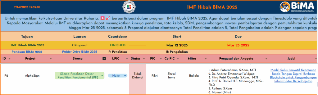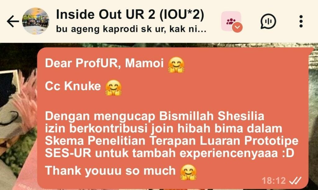 Awalnya memang Shesil ditugaskan untuk Project SES-UR, tapi ternyata Shesil dipindahkan untuk menjadi Co-Pic Hibah Bima Project AlphaSign, berikut IMF: