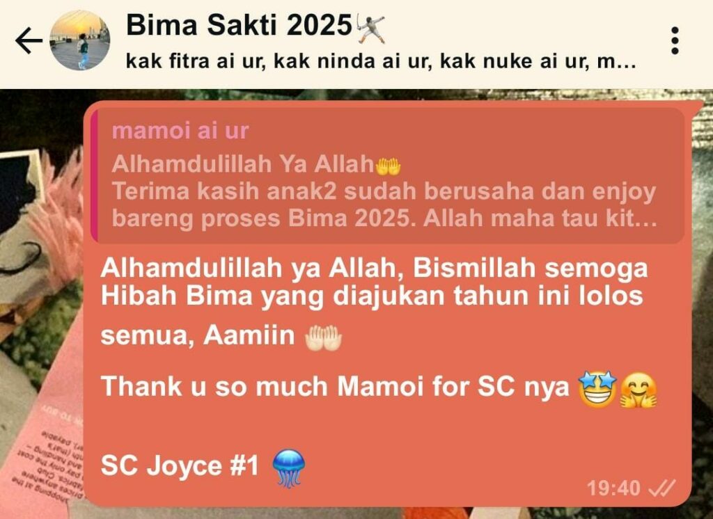 Pada tanggal 11 Maret 2025, Alhamdulliah Shesil diberi kesempatan untuk berkontribusi dalam Hibah Bima 2025, berikut pernyataan Shesil: