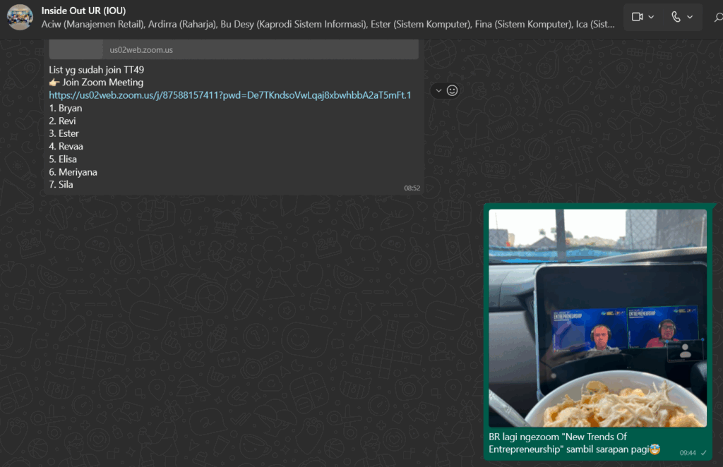 Di pagi yang cerah ini, Bryan tengah mengikuti Zoom Talk Session #49 yang mengangkat topik seru dan kekinian, yaitu “New Trend of Entrepreneurship”. Sambil menyimak materi yang penuh inspirasi tentang dunia kewirausahaan masa kini, Bryan juga menikmati semangkuk bubur hangat sebagai teman sarapan. Suasana belajar pun terasa santai tapi tetap produktif—perpaduan yang pas untuk mengawali hari dengan semangat dan wawasan baru!
