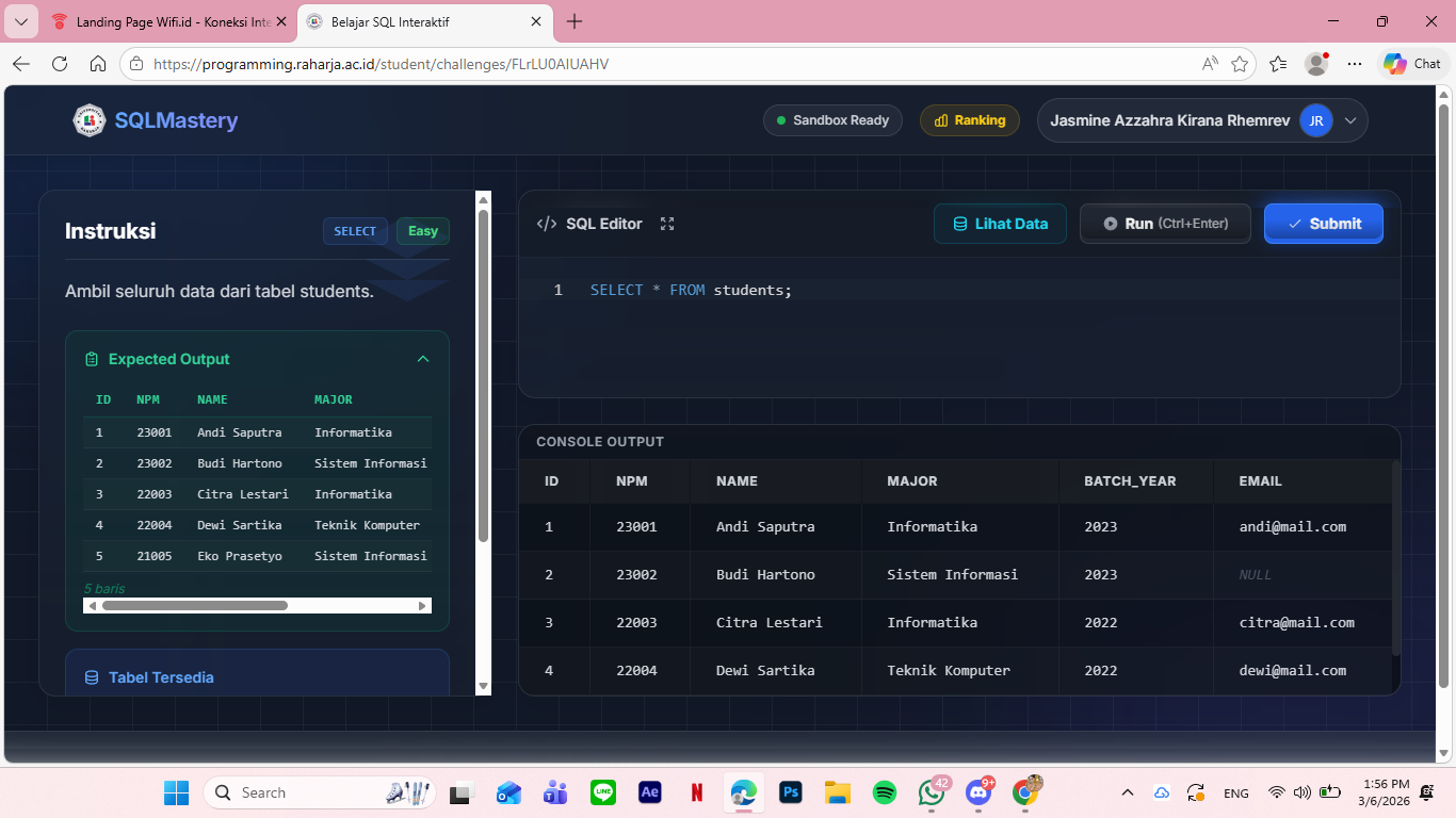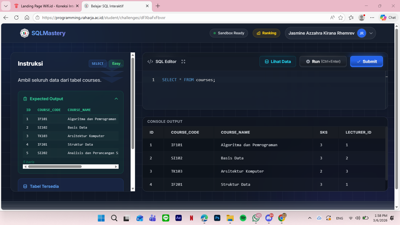Nama : Haikal Ananta Dwiguna NIM : 2431416812 Telah menyelesaikan challange mingguan dari kelas Pemrograman 2 sesuai yang diinstruksikan dosen pengampu kami, Kak Adam. Pelajaran SQL ini ternyata sangat berfungsi untuk dipelajari, karena pengimplementasiannya sangat massif dipakai di segala industri …