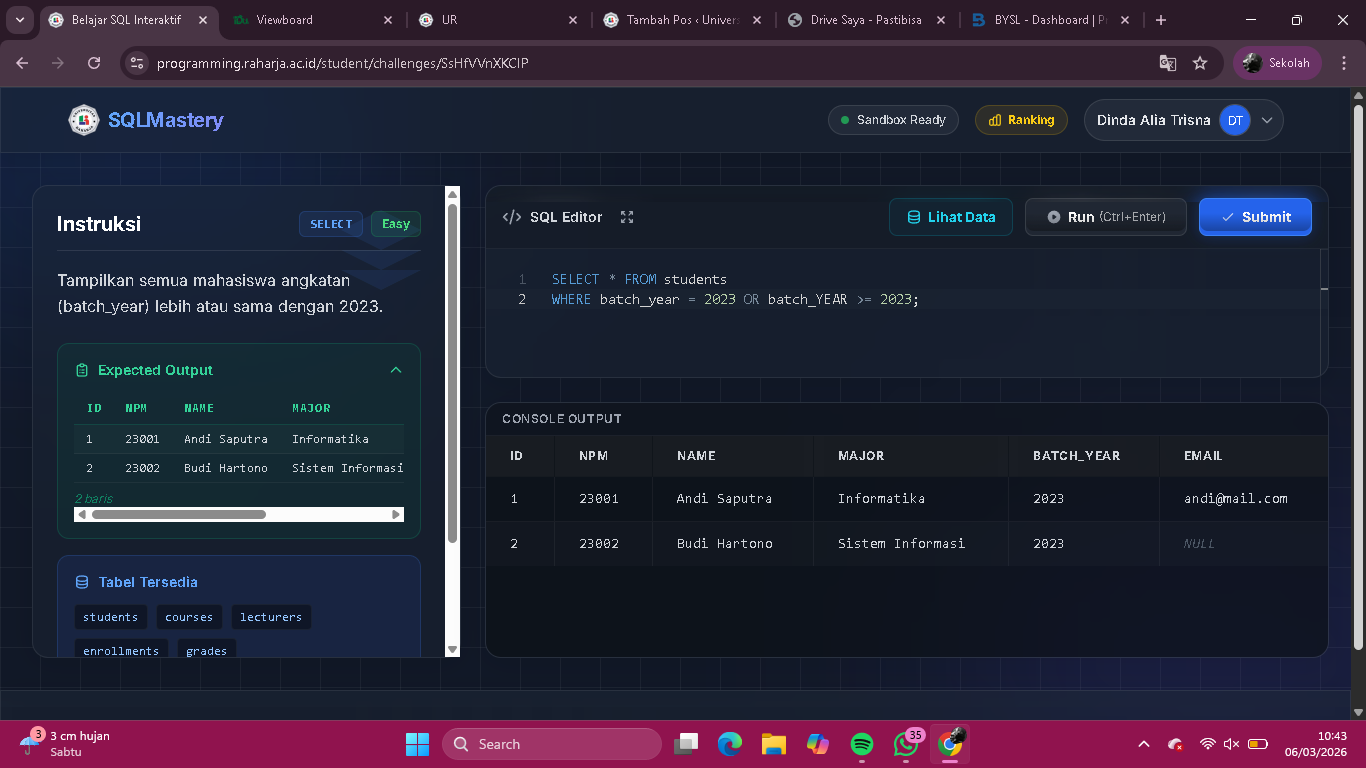 Telah menyelesaikan tugas Mata Kuliah Pertemuan II, bukti sebagai berikut: