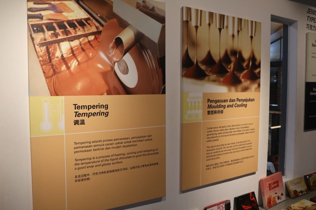 Destinasi pertama kami adalah Berly’s Wonderland yang terletak di kawasan Seri Kembangan. Begitu tiba di depan bangunannya, aku langsung terpukau dengan desain fasadenya yang tampak estetik dengan ornamen dan hiasan khas cokelat. Suasananya hangat, manis, dan membuat penasaran untuk segera masuk ke dalam. Setelah melangkah ke area dalam, aku menemukan sesuatu yang lebih dari sekadar toko cokelat. Tempat ini juga memiliki museum yang menampilkan sejarah panjang cokelat sejak zaman dahulu, lengkap dengan lukisan, peralatan tradisional, serta replika berbagai bentuk cokelat dari masa ke masa. Rasanya seperti berjalan mundur ke dalam waktu, melihat bagaimana sesuatu yang kini begitu umum ternyata punya perjalanan sejarah yang kaya.