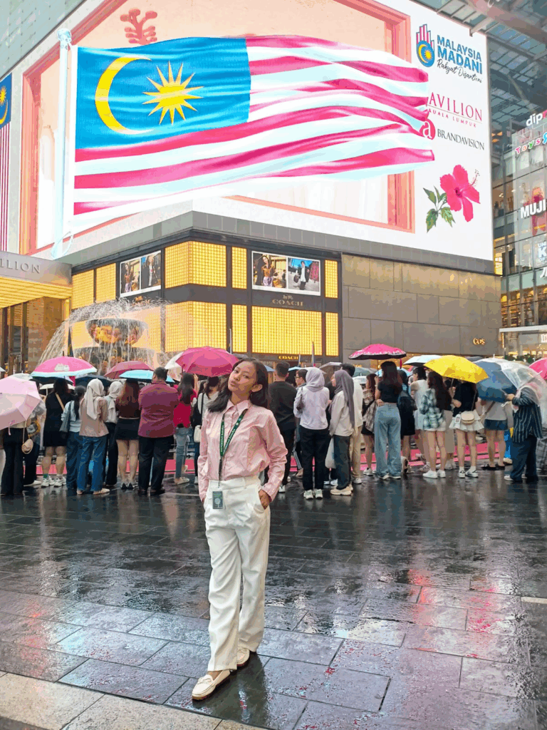 Tujuan ketiga adalah Bukit Bintang, kawasan metropolitan Kuala Lumpur yang sangat modern. Rasanya seperti masuk ke jantung kota yang dipenuhi lampu, gedung tinggi, dan pusat perbelanjaan mewah. Elisa sempat masuk ke Pavilion Kuala Lumpur, salah satu mal terbesar yang benar-benar menggambarkan gaya hidup modern. Di sini, Elisa mencoba Oriental Kopi yang sedang viral. Walaupun antreannya panjang dan harus menunggu cukup lama. Menariknya, di hari yang sama Elisa mendapat kabar bahwa aktor Korea ternama, Lee Jong Suk, sedang berada di kawasan ini juga. Walaupun Elisa tidak sempat melihatnya secara langsung, hal itu menambah cerita seru dalam perjalanan hari ini.