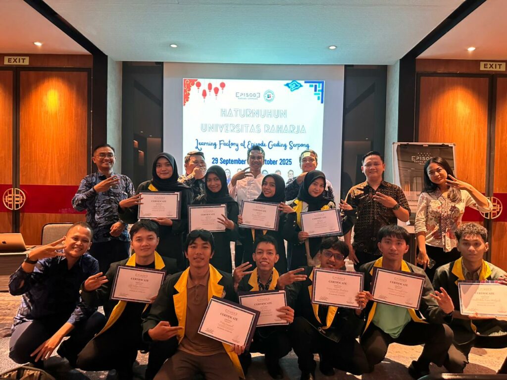 TANGERANG — Program Learning Factory Universitas Raharja yang berlangsung selama dua pekan di Episode Gading Serpong, salah satu hotel terkemuka di Gading Serpong, resmi ditutup. Acara penutupan yang digelar pada Jumat, 10 Oktober 2025, menandai keberhasilan kolaborasi antara dunia akademis dan industri dalam menyiapkan sumber daya manusia unggul yang siap beradaptasi dengan tuntutan dunia kerja modern. Rangkaian kegiatan ini merupakan bukti nyata komitmen Universitas Raharja dalam memberikan pengalaman pembelajaran yang relevan dan holistik kepada mahasiswanya.
