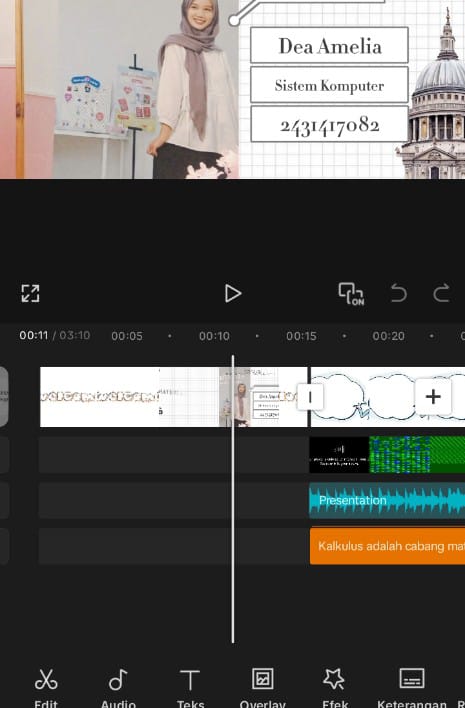 CapCut Digunakan untuk membuat dan mengedit video penjelasan materi. Misalnya, saya pernah mengerjakan tugas video presentasi individu di mana saya menjelaskan topik algoritma dan struktur data, lalu mengeditnya menggunakan CapCut agar lebih informatif dan estetik.