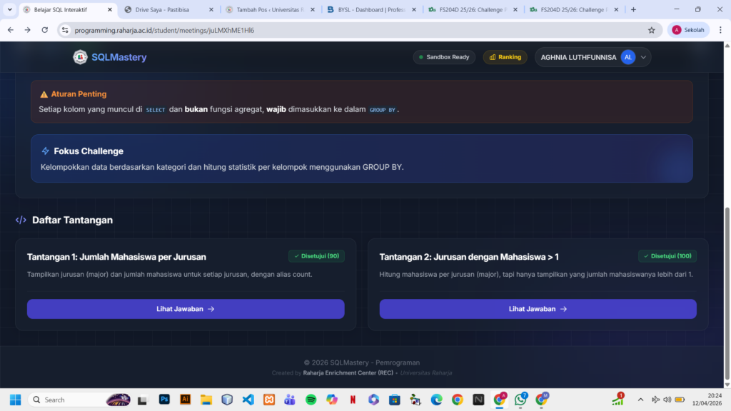 pada pertemuan kali ini membahas penggunaan GROUP BY dalam SQL untuk mengelompokkan data berdasarkan kategori tertentu dan menghitung statistik tiap kelompok.
