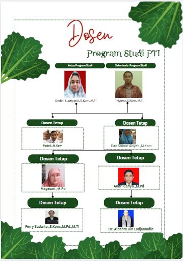 Program Studi Pendidikan Teknologi Informasi (PTI) Universitas Raharja didukung oleh tim dosen tetap yang profesional, berkompeten, dan berdedikasi tinggi dalam menjalankan Tridharma Perguruan Tinggi. Dengan latar belakang keilmuan yang beragam di bidang teknologi informasi dan pendidikan, para dosen aktif dalam pengajaran, penelitian, dan pengabdian kepada masyarakat.