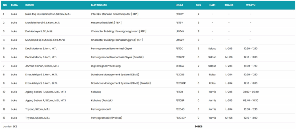 Berikut adalah jadwal kuliah saya dengan lengkap disertai dosen-dosen pengampu di semester 2: