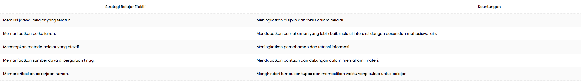 - Penerapan strategi belajar efektif ini dapat membantu mahasiswa memaksimalkan potensi dan kesempatan yang ada dalam mencapai IPK yang lebih tinggi.