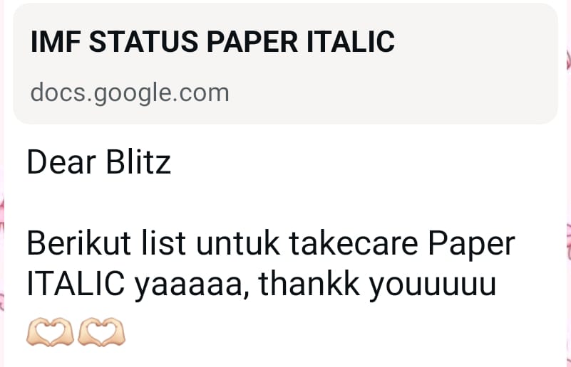 Pada tanggal 14 hingga 15 Juni 2025, Ester berkontribusi dalam proses templating dua paper untuk jurnal ITALIC. Kegiatan ini mencakup penyesuaian format sesuai dengan template yang ditetapkan oleh jurnal, mulai dari struktur penulisan, gaya sitasi, hingga layout keseluruhan. Ester memastikan setiap elemen dalam paper tertata rapi dan konsisten, sehingga siap untuk proses review dan publikasi. Kontribusi ini menjadi bagian dari dukungan teknis dalam menjaga kualitas dan kerapihan naskah ilmiah yang akan diterbitkan.