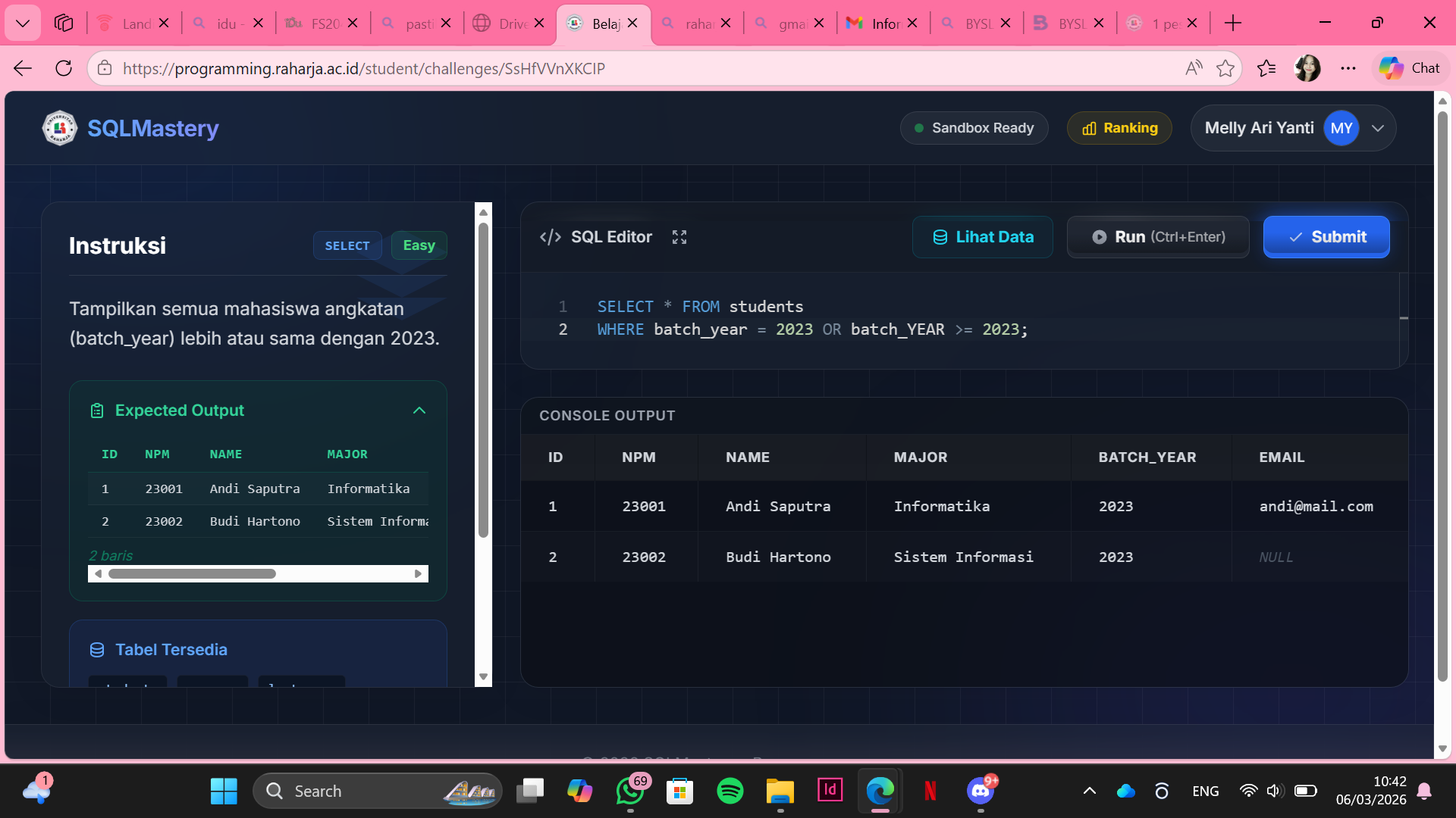 Nama : Haikal Ananta Dwiguna NIM : 2431416812 Telah menyelesaikan challange mingguan dari kelas Pemrograman 2 sesuai yang diinstruksikan dosen pengampu kami, Kak Adam. Pelajaran SQL ini ternyata sangat berfungsi untuk dipelajari, karena pengimplementasiannya sangat massif dipakai di segala industri …