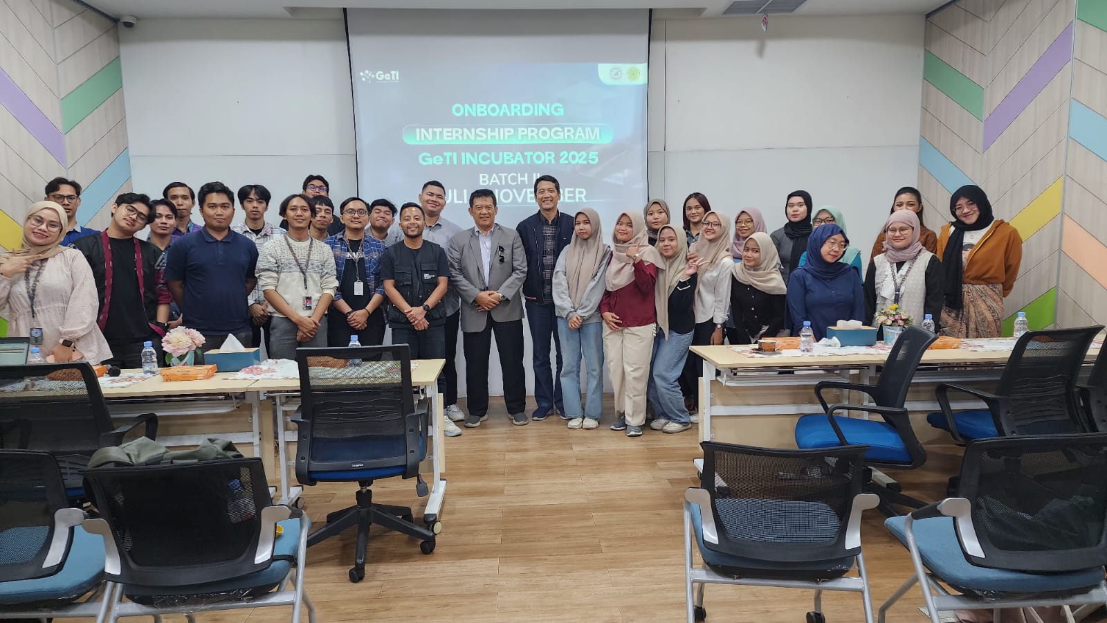 Kegiatan onboarding ditutup dengan sesi foto bersama sebagai simbol dimulainya proses pembelajaran di lingkungan profesional PT. GeTI.
